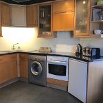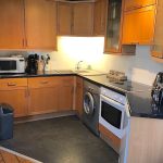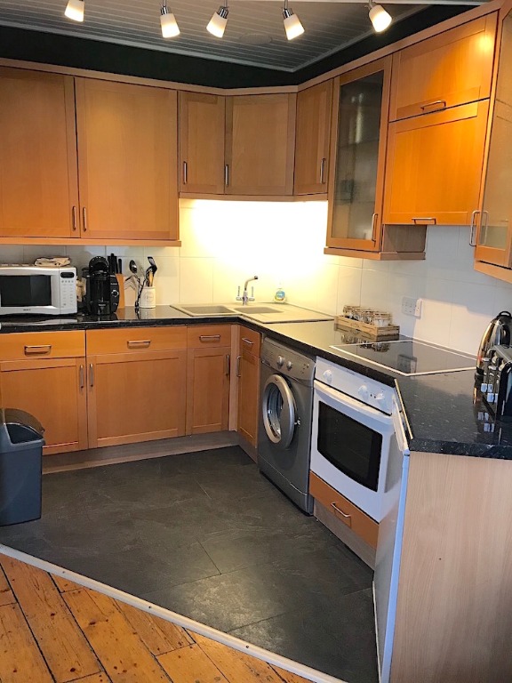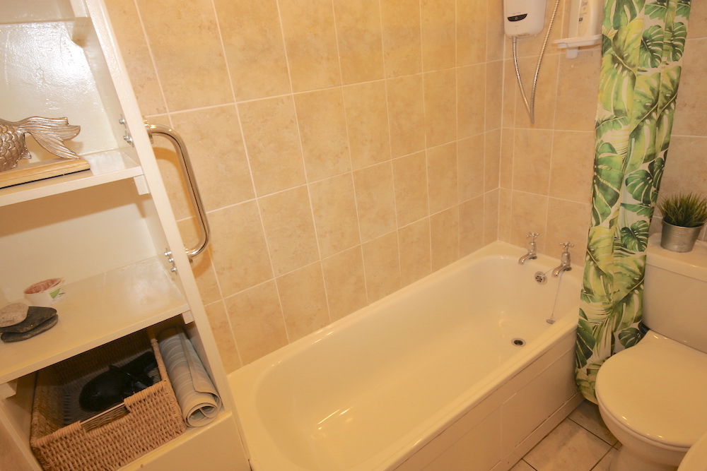 The modern, fully fitted kitchen flows off the living room. The kitchen has quality contemporary units and all necessary appliances include washing machine, oven, hob, extractor and fridge. The large, double bedroom has ample wardrobe space; the bathroom is fitted with a three-piece suite with a shower over the bath.