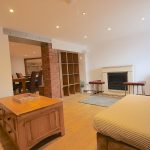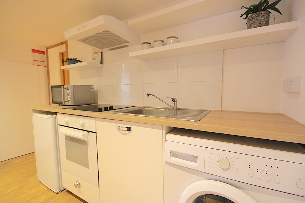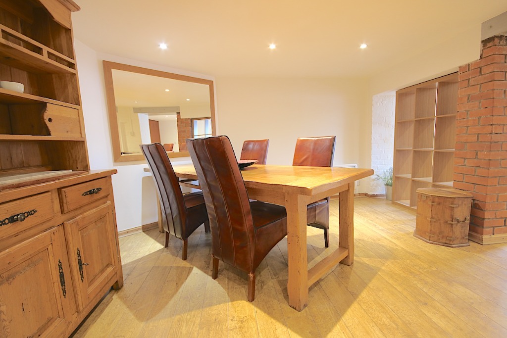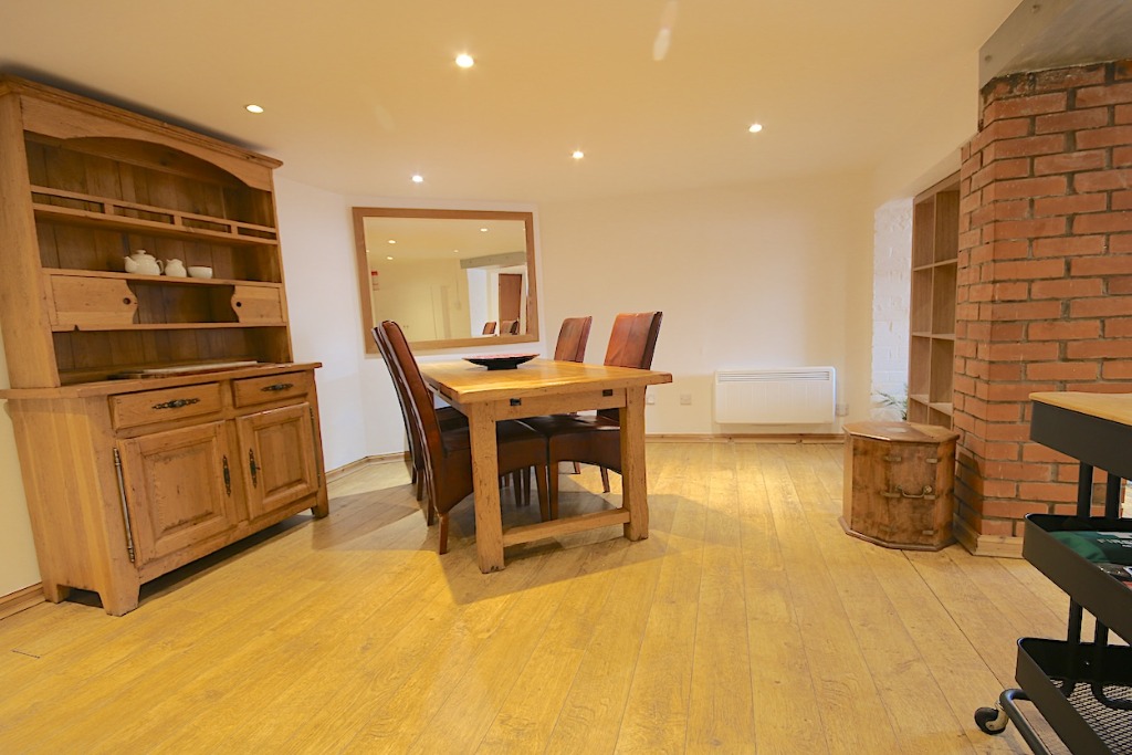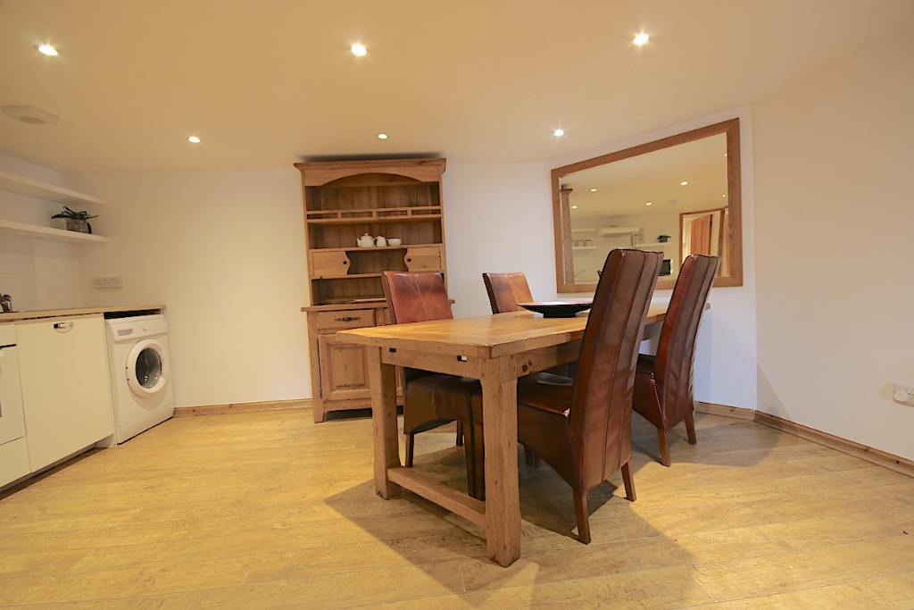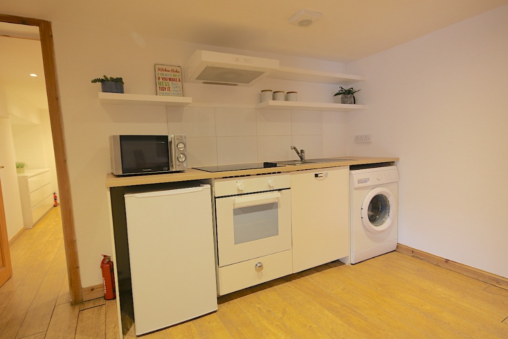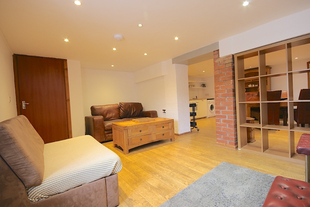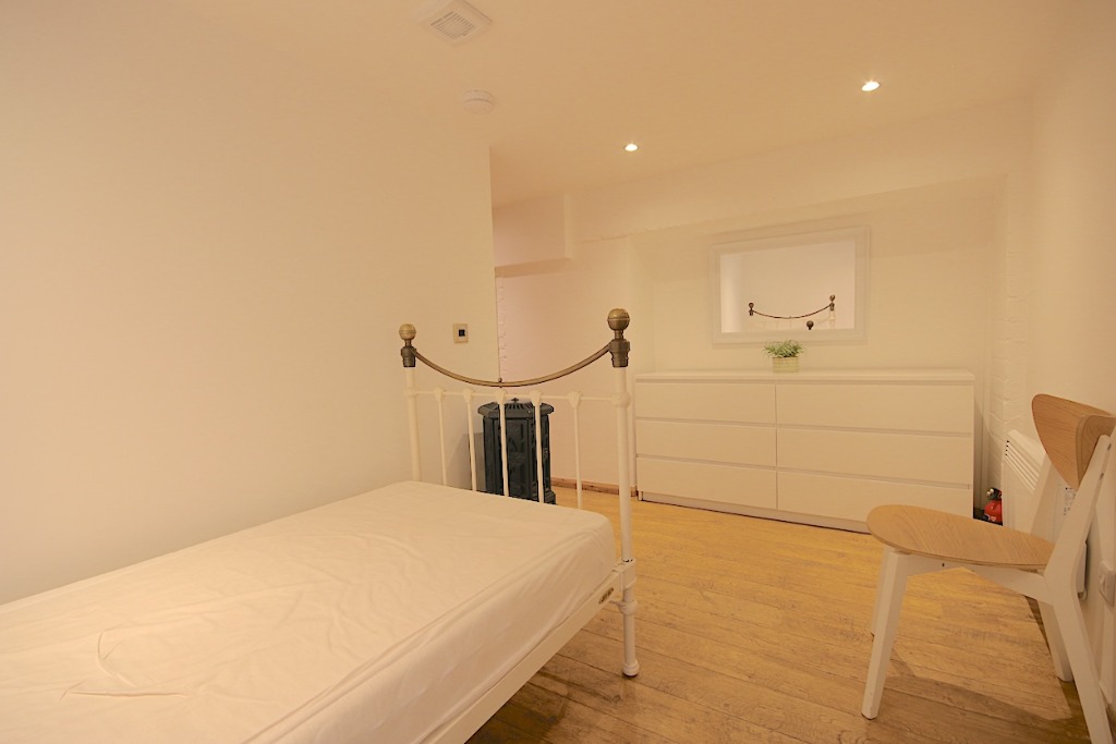 The property comprises an entrance hall, double bedroom with bed & bedside tables and storage. There is a large living room with two sofas and coffee table neatly displayed. The living room leads into an open-plan kitchen with all necessary appliances and a large dining area with dining table, perfect for entertaining. The property further comprises the bathroom and a very large box room which can be used as a study, but cannot be classed as a bedroom due to it not having a window. The property has solid wood floors, the kitchen is fully fitted with washing machine and fridge freezer, oven hob with extractor hood. Ample preparation space and cupboards. The bathroom is fully tiles with shower, hand basin and toilet.