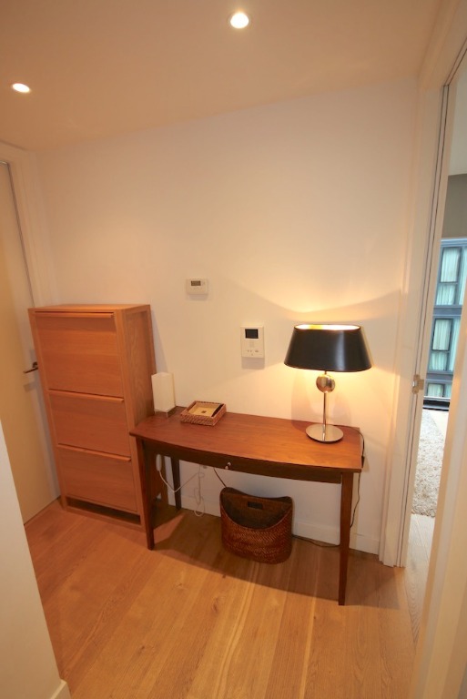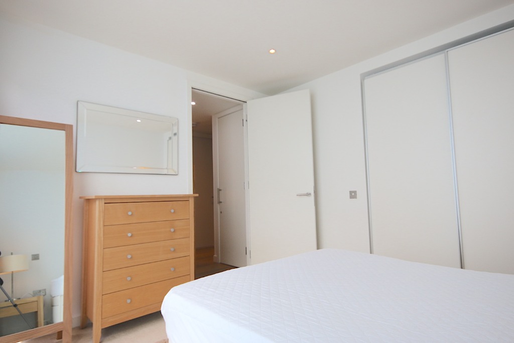 The bedroom also leads off the hallway. The bedroom is a good size with plenty of storage in the form of a double sliding wardrobe.